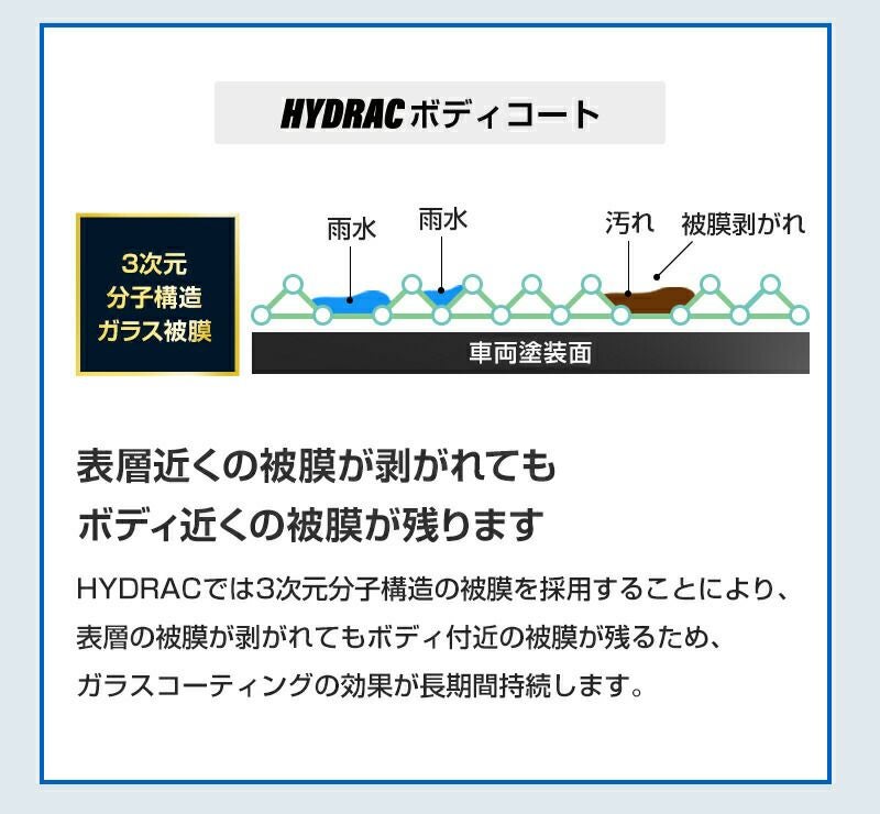 他の画像を見る HYDRAC 三次元構造のガラス被膜が奥行きのある艶と超撥水を実現! HYDRAC ボディコート 200mL 販売価格 ¥ 2,970 税込 三次元構造のガラス被膜が奥行きのある艶と超撥水を実現! カートに入れる お気に入りに登録する